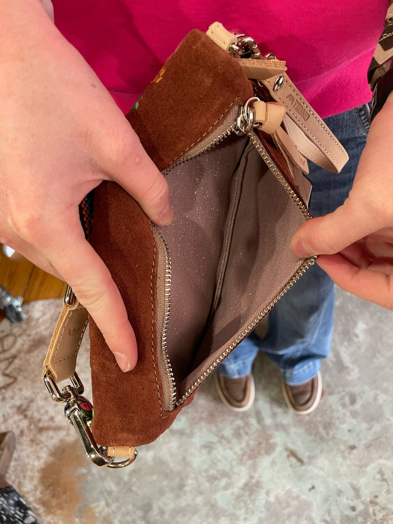 We dreamt up the best way to carry the good stuff with our new Uptown Crossbody. Here to hang in style with three zipper compartments, six card holder slots, and an included wristlet strap, this embroidered crossbody bag makes it easy to hold the necessities close by your side.