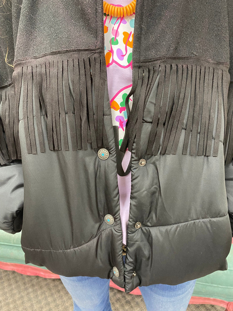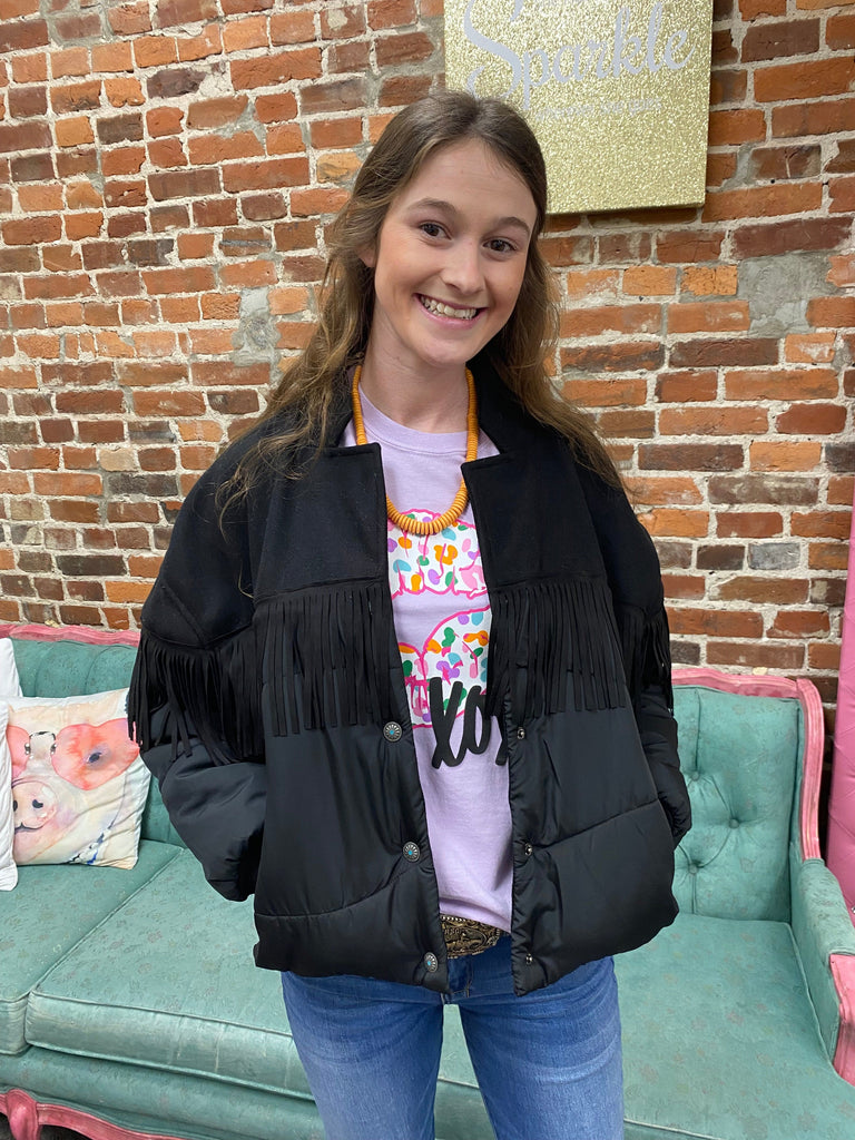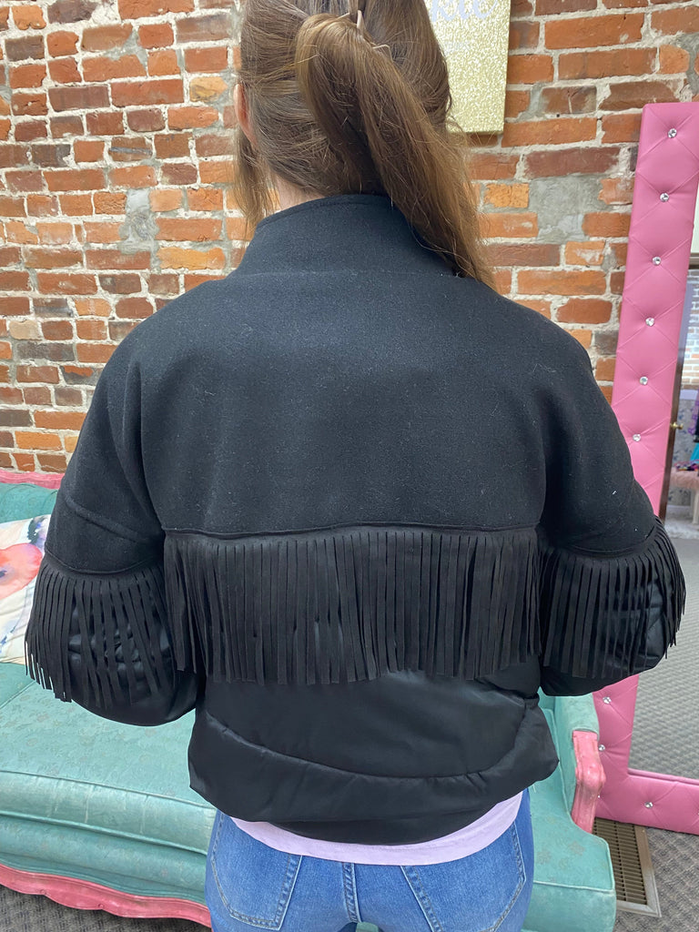Experience cozy warmth and impeccable style with the Y'all Fly midnight Jacket. This cropped jacket fits true to size and is as warm as a coat, keeping you comfortable in chilly weather. Its sleek design adds a touch of elegance to any outfit. Perfect for fashion-forward individuals.