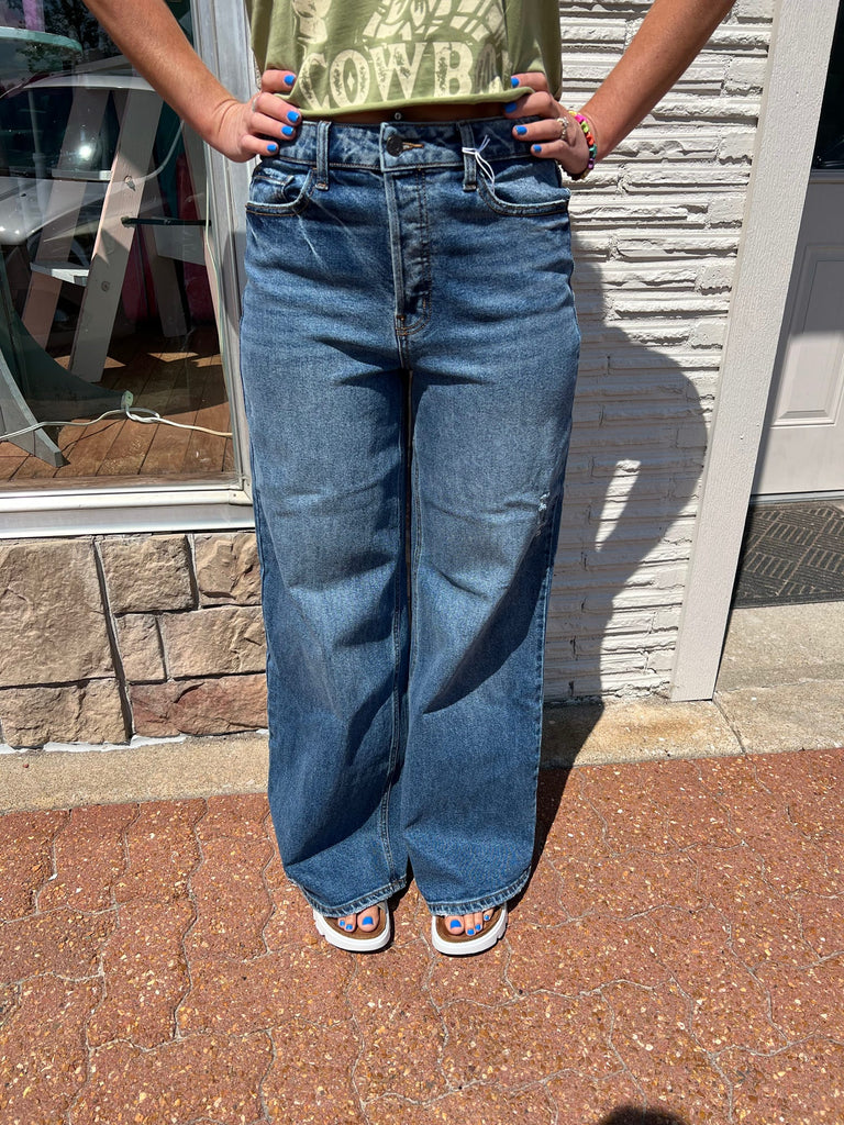 Introducing our Dark Denim High Rise Wide Leg Jean - the perfect addition to your wardrobe! Crafted with high-quality denim, these jeans offer a flattering and stylish fit. The adorable wide leg design gives you a trendy look while providing comfort and versatility. Elevate your style with these must-have jeans.