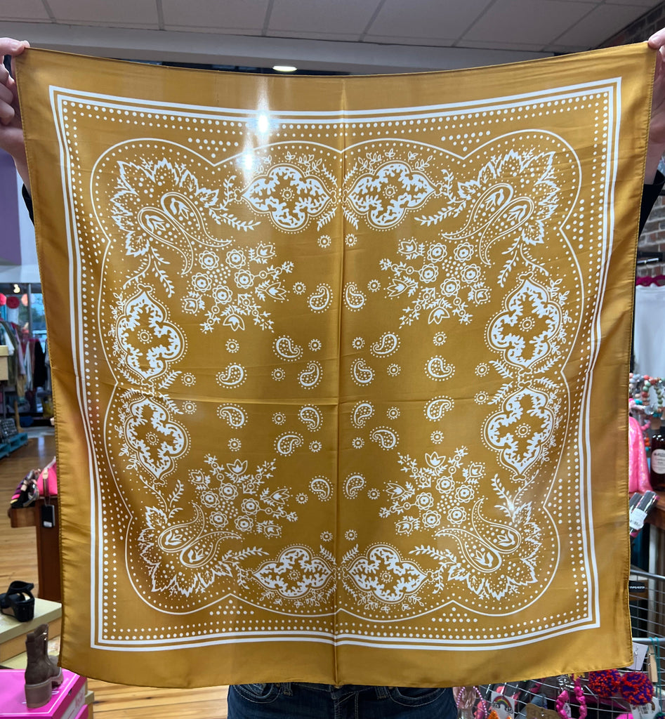 Embrace the wild west with the Small Buffalo Bandana Wild Rags Mustard, a versatile accessory that adds a touch of rustic charm. This paisley print scarf is perfect for tying around your neck, wrist, or even as a headband