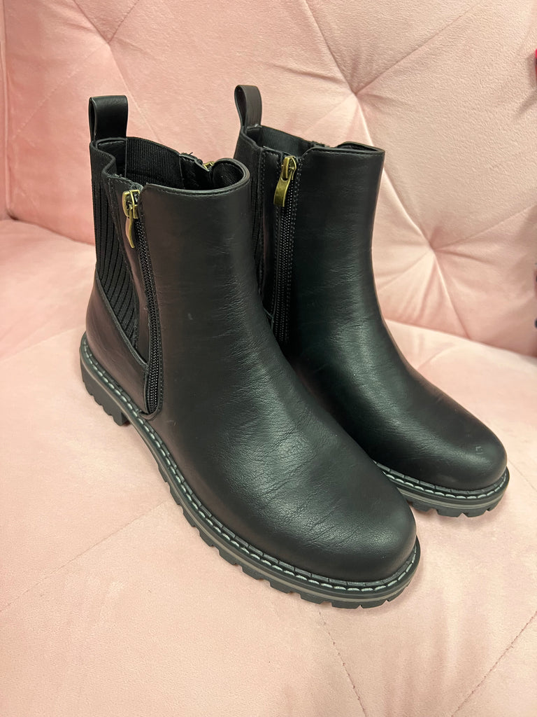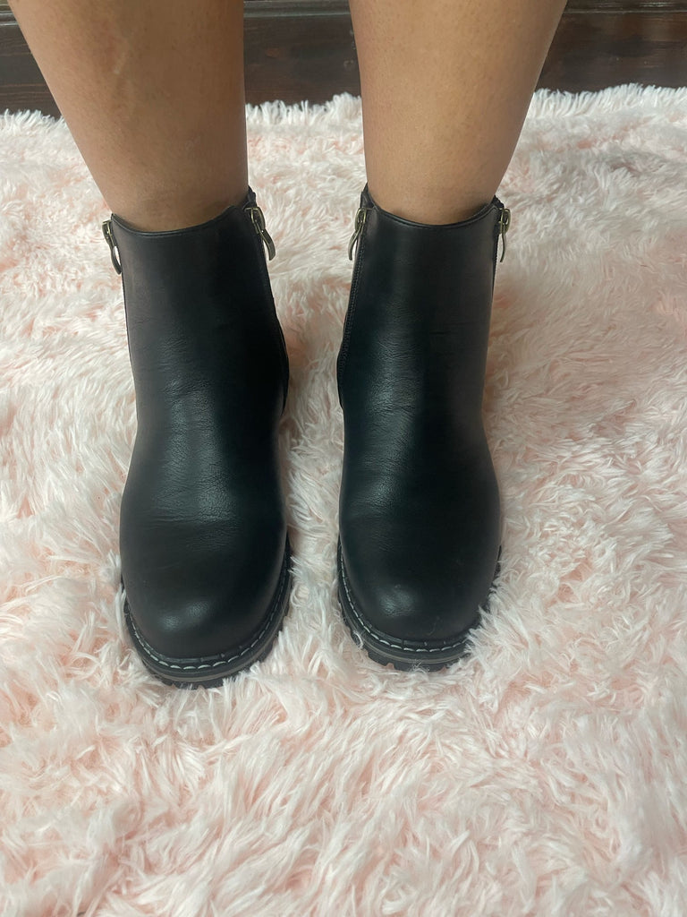 Experience ultimate comfort in Corkys Don't Be Difficult Black Boot. The dual zippers add style and functionality, allowing for easy on and off. With an outside zipper for looks and an inside zipper for use, these boots make fashion effortless. Say goodbye to uncomfortable footwear and hello to a comfortable and stylish experience. Fitting true to size in length. Appropriate for narrow to average width feet.